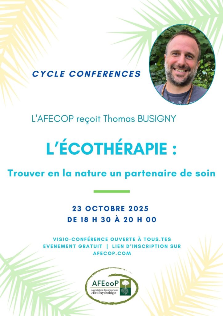 Inscription ICI : https://www.helloasso.com/associations/association-francophone-d-ecopsychologie/evenements/inscription-conference-thomas-busigny-23-octobre-18h30